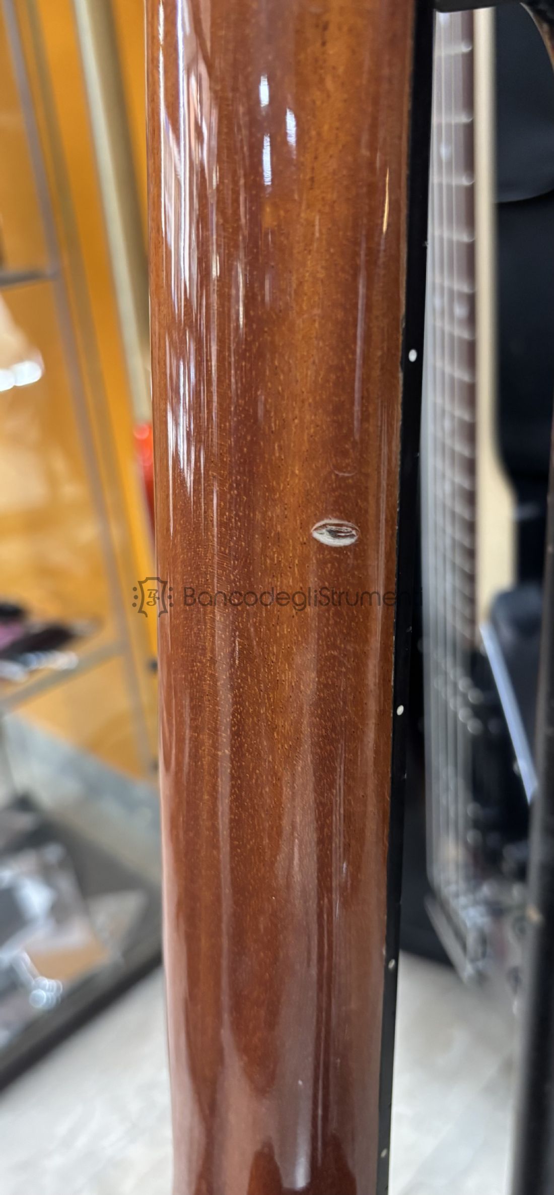 Il suo manico stretto, realizzato in mogano africano e rinforzato con una striscia nascosta in ebano, garantisce eccezionale resistenza e stabilità, facilitando la maneggevolezza e consentendo un'esecuzione precisa e agile in qualsiasi stile.