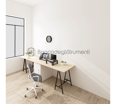 L'ampio spazio tra le gambe di supporto permette di utilizzare lo spazio sottostante per un piccolo laptop o ulteriori materiali.