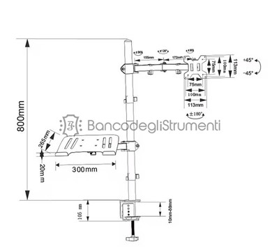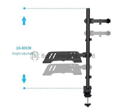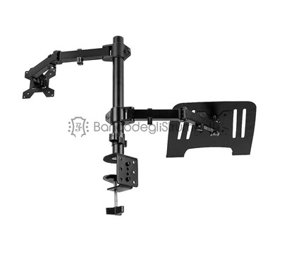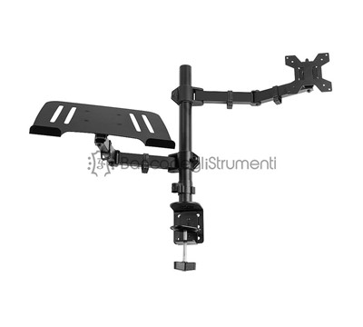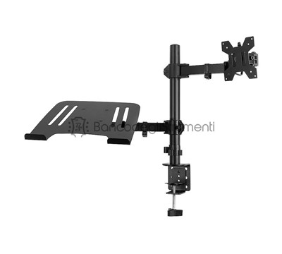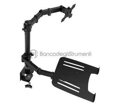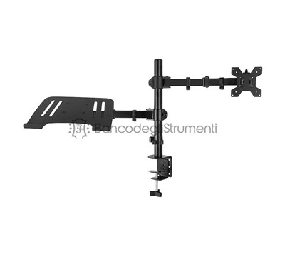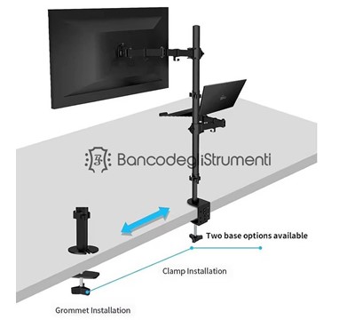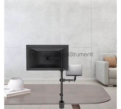 Per Monitor da 13 a 32 pollici Piastra VESA per installazione facile Sistema passacavi integrato Piastra VESA rotante a 360 gradi 2 opzioni di Montaggio incluse: morsetto da tavolo o bulloni di montaggio. Regolazione libera in altezza Include materiali di montaggio Colore nero