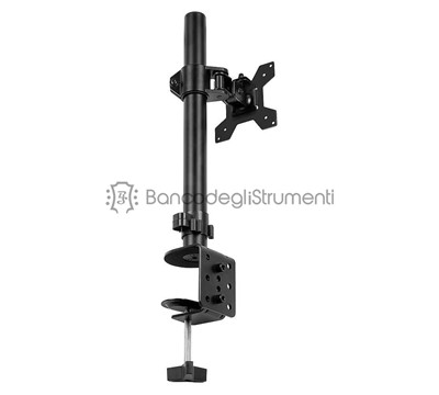 Per Monitor da 13 a 32 pollici Piastra VESA per installazione facile Sistema passacavi integrato Piastra VESA rotante a 360 gradi 2 opzioni di Montaggio incluse: morsetto da tavolo o bulloni di montaggio. Regolazione libera in altezza Include materiali di montaggio Colore nero