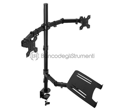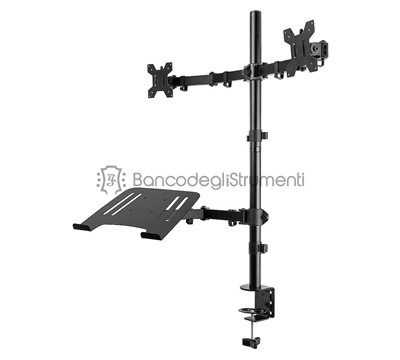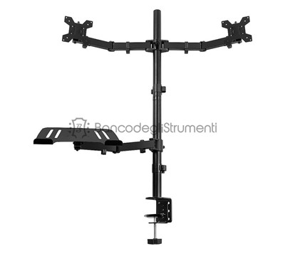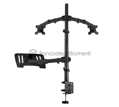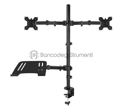 Per Monitor da 13 a 32 pollici Piastra VESA per installazione facile Sistema passacavi integrato Piastra VESA rotante a 360 gradi 2 opzioni di Montaggio incluse: morsetto da tavolo o bulloni di montaggio. Regolazione libera in altezza Include materiali di montaggio Colore nero