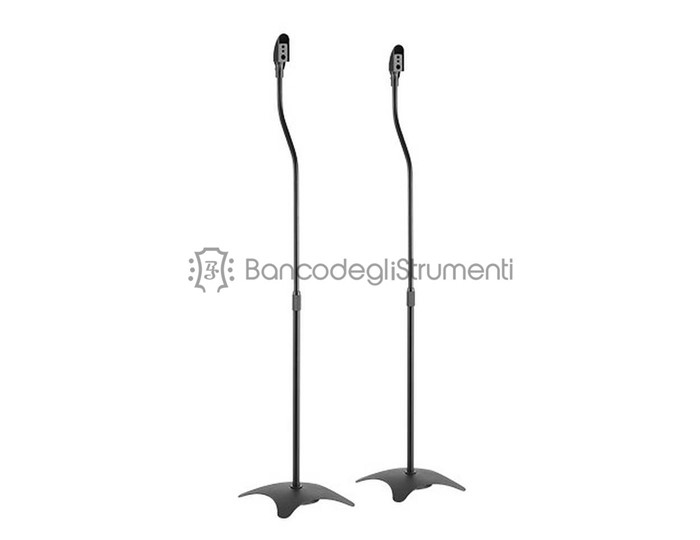 Supporto da pavimento per altoparlanti con altezza regolabile Design universale Peso aggiunto base Robusta costruzione in acciaio per sopportare importanti sollecitazioni Sistema di gestione dei cavi integrato Colore nero opaco Set di 2 supporti da pavimento