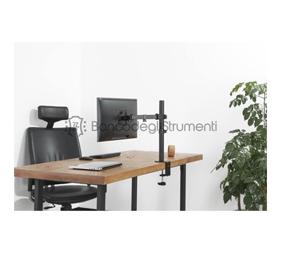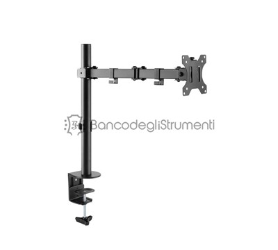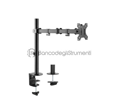 Per Monitor da 13" a 32" Piastra VESA per installazione facile Con gestione dei cavi Piastra VESA rotante a 360 2 opzioni di Montaggio incluse: morsetto da tavolo o bulloni di montaggio. Regolazione libera in altezza Include materiali di montaggio Colore: nero