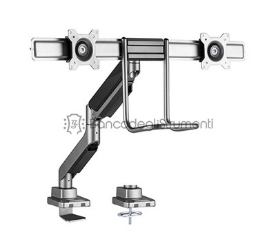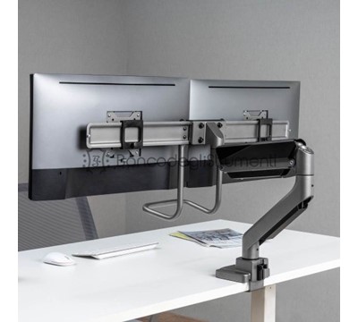 Supporto per monitor Heavy Duty per due monitor Molla a gas che controbilancia perfettamente il peso del tuo monitor Impugnatura facile da impugnare Perfetto per monitor pesanti e sovradimensionati da 17" - 32" Piastra VESA rotante a 360° e rimovibile Arresto rotazione 180° integrato Design a inclinazione libera Binario orizzontale curvo Con gestione dei cavi Incluso materiale di montaggio Colore: nero