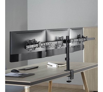 Supporto per tre monitor Per la maggior parte dei monitor da 17" - 32" Design della piastra VESA rimovibile che consente una facile installazione Con gestione dei cavi 360° Piastra rotante VESA Due opzioni di montaggio, sono inclusi sia il morsetto da tavolo che il bullone di montaggio Altezza regolabile liberamente per una posizione ergonomica ottimale Incluso materiale di montaggio Colore: Nero