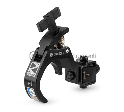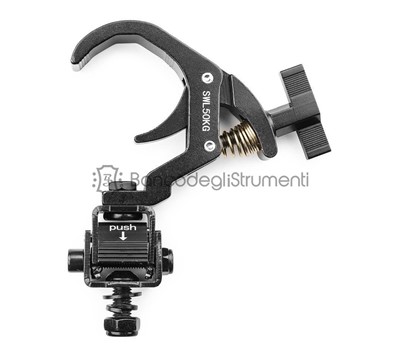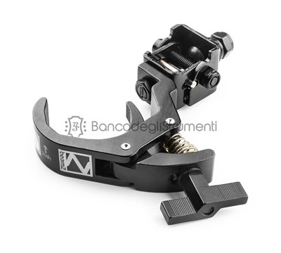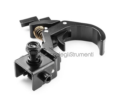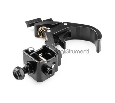 Sistema di attacco rapido inclinabile Lascia i morsetti sugli effetti di luce Costruzione in alluminio ad alta resistenza Fissaggio a farfalla e controdado M10 Per tubi/tralicci da 35 - 60 mm di diametro Capacità di carico: 50 kg