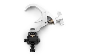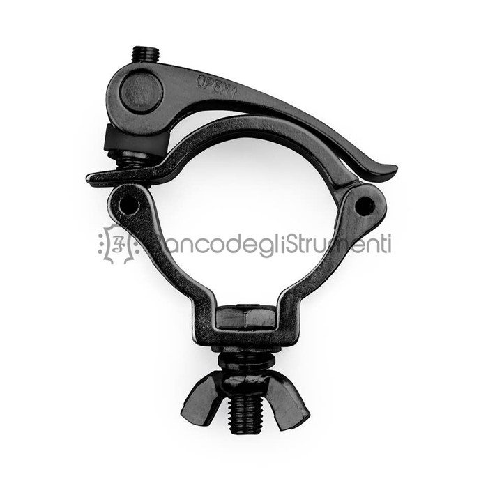 Morsetto a sgancio rapido Progettato per accoppiarsi e disaccoppiarsi rapidamente Costruzione in alluminio ad alta resistenza Fissaggio a farfalla Per tubi/tralicci da 48 - 51 mm di diametro Capacità di carico: 100 kg