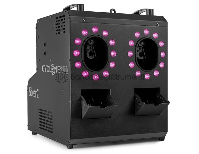 Cyclone 200 Dual Bubble Smoke LED IP: Il beamZ Cyclone200 è una macchina versatile per fumo e bolle che porta gli effetti speciali a un livello superiore.