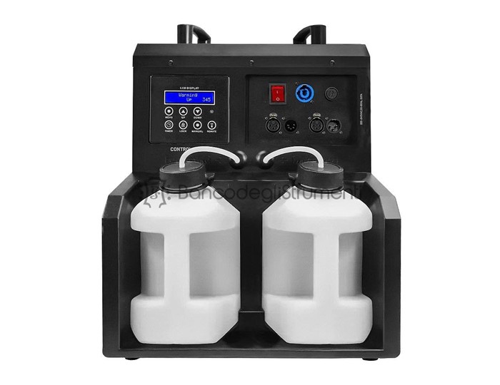 Product colour Black Heat-up time (minutes) 3 Output volume per minute 250m³ Tank capacity 2x 1.2l Light source 4-in-1 LED Colours Red, Green, Blue, White Quantity of LEDs 24 Modes Automatic programs, DMX, Manual DMX channels 11 DMX connection 3-pin XLR, 5-pin XLR Power supply 100-240VAC 50/60Hz Dimensions (L x W x H) 470 x 340 x 440mm Weight (kg) 10,50 Included accessories Remote control (wireless), Power cable