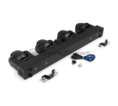Barra luminosa a LED con 4 teste mobili controllabili individualmente LED 4 in 1 ultraluminosi da 40 W Colore: RGBW 16 programmi ad esecuzione automatica Controllo del suono con sensibilità regolabile Modalità DMX e Stand-alone Sincronizzazione master/slave Funzione strobo a velocità regolabile Pannello di controllo con display LCD Molteplici opzioni di montaggio Facile collegamento a ponte e collegamento di alimentazione Ingresso/uscita DMX tramite XLR a 3/5 pin Ingresso/uscita P-Con Incluse 2 staffe Omega Quick Lock