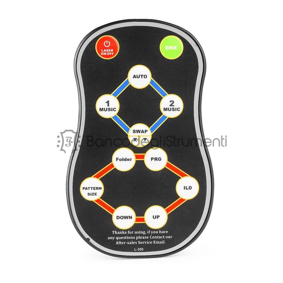 Sul retro troverai un ingresso/uscita DMX con XLR a 3 pin e una connessione ingresso/uscita ILDA.