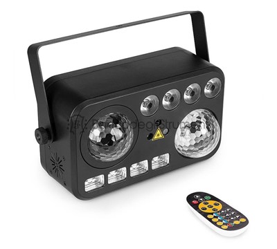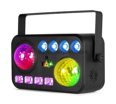 Effetto 6 in 1 con Water Wave, Jelly Ball, PAR, luce UV, strobo e doppio effetto pattern Effetto Onda d'Acqua con LED RGBW da 10W Effetto Jelly Ball con LED RGBW da 10W Effetto luce PAR con 4 LED PAR RGBW da 4 W Effetto combinato UV/strobo con 4 LED bianchi/UV Effetto motivo rosso/verde Modalità DMX e stand-alone Funzione master/slave Modalità audio con sensibilità regolabile Modalità automatica con spettacoli pre-programmati Facile da installare e utilizzare Basso consumo energetico Ingresso/uscita DMX tramite XLR a 3 pin Pannello di controllo con display LED Telecomando IR