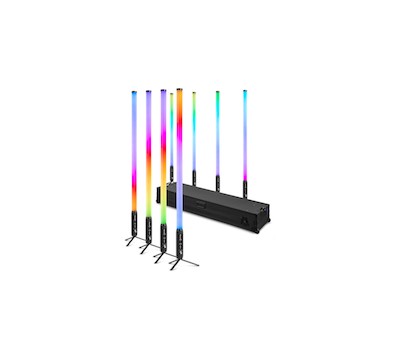 Il kit Zelos Tube viene fornito completo di otto tubi LED Zelos e tutti gli accessori essenziali di cui hai bisogno per le tue prossime riprese o eventi, interni o esterni.