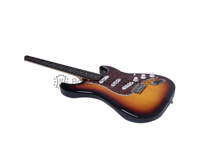 La Eko ST-100 Sunburst è la chitarra elettrica della serie "Tribute 100" di casa Eko Guitars con corpo in pioppo, manico in acero e tastiera in laurel. È equipaggiata con pickup Eko in configurazione S-S-S, controlli di Volume e due Toni, switch blade a 5 vie e ponte con leva tremolo. Presenta un nut da 42mm, lunghezza della scala di 650mm e tastiera da 22 tasti con radius da 14". Ideale per iniziare lo studio della chitarra elettrica con uno strumento performante, confortevole e con un ottimo rapporto prezzo/qualità.
