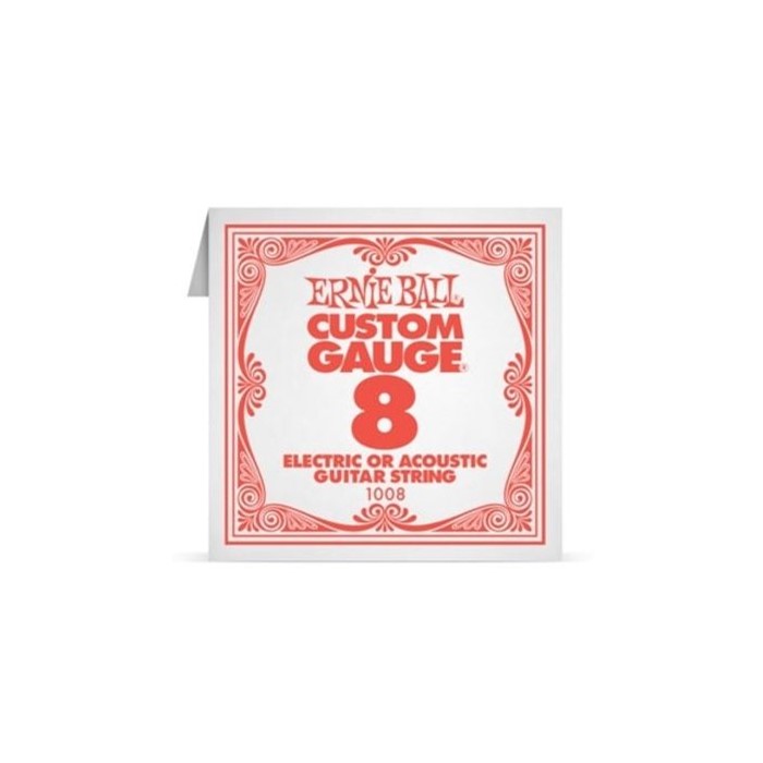 Le Ernie Ball 1008 Realizzate in acciaio temprato ad elevato contenuto di carbonio placcate allo stagno, usato per le chitarre elettriche e acustiche. Ernie Ball ha rivoluzionato il mercato offrendo corde singole di diverso diametro che permettono ai chitarristi di creare mute personalizzate