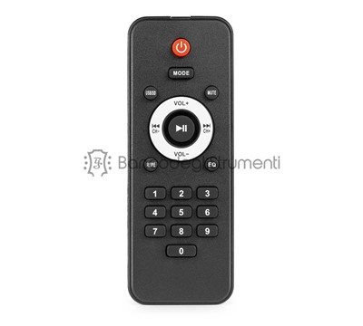 Mixer con 4 canali 2x ingressi combinati Jack/XLR con alimentazione phantom +48V MP3 player integrato con ingresso USB Ricevitore BT integrato per streaming da dispositivi mobili 1 ingresso stereo (6.3mm Jack) 2x uscite stereo bilanciate (XLR) Uscite separate con controllo zone e cuffie Controllo volumi per canale FX send/return LCD display con lettore tag ID3: Display titolo canzone ed artista LED di picco per ogni canale mono " Lettore MP3 con porta USB e SD Ricevitore BT per streaming audio 2x ingresso microfono Jack da 6,3 mm EQ: Pop, Rock, Jazz, Classic, Cut e Normal Stereo Line Input (RCA) Ingresso DC12V esterno Controllo alti / bassi / volume / echo Compreso il telecomando