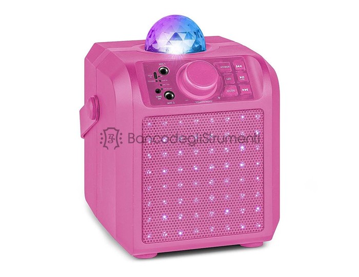 KAR55PKaraoke Sp.2Mic.BT LED JB PNK: Migliora la tua festa con l'altoparlante karaoke Fenton KAR55.