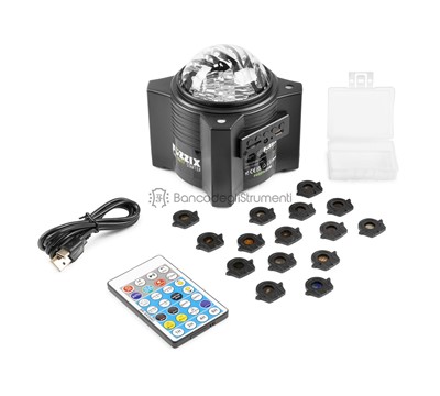 Questo effetto spettacolare è alimentato da 4 luminosi LED RGBW da 2 W, un potente LED bianco e laser rossi e verdi che creano un effetto sorprendente.