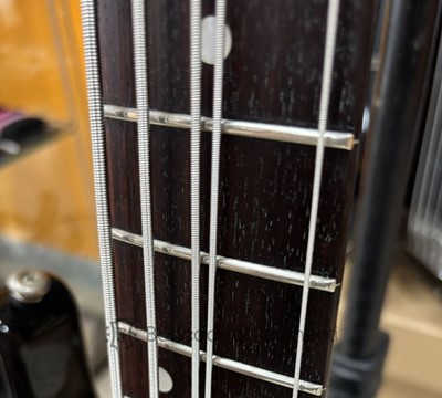 Il ponte a cinque doghe sul top è cromato e presenta una costruzione top-load. L'humbucker posizionato al ponte può essere utilizzato sia come pickup passivo che attivo. Il manico in acero è sormontato da una tastiera in palissandro a 21 tasti.