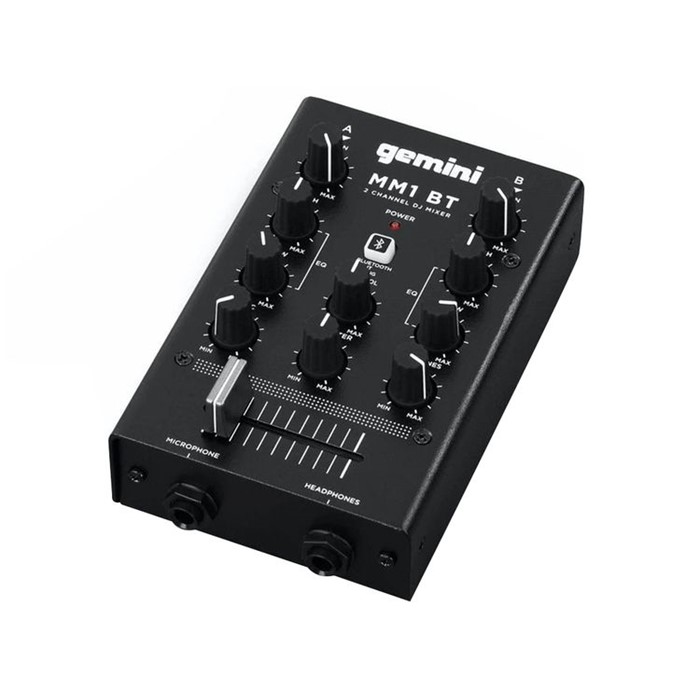 Il Gemini MM1 BT è un mixer stereo ultracompatto a 2 canali con connettività Bluetooth integrata che ti consente di riprodurre in streaming wireless la musica dal tuo smartphone / tablet direttamente al tuo mixer.