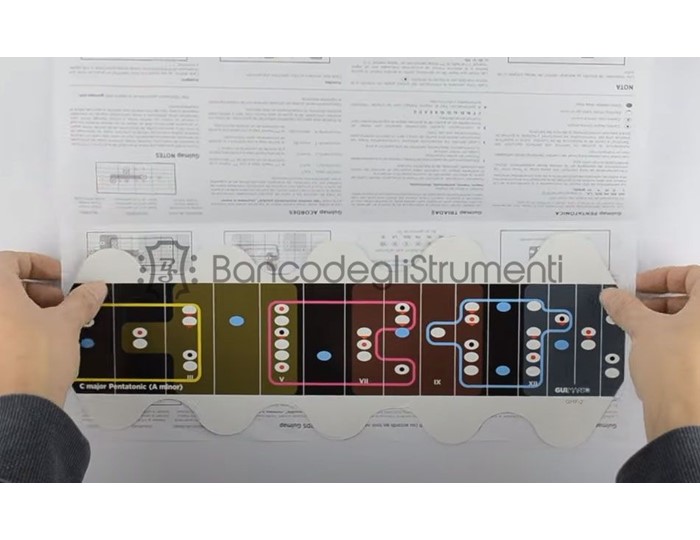 GuiMaps è una guida visiva pensata per facilitare l'apprendimento nemonico delle diteggiature sulla chitarra. Aderisce senza colle, è pù volte riposizionabile e non lascia residui.