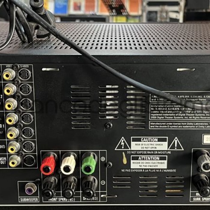 - Potenza media continua (FTC): (Modalità stereo): 55 watt per canale su 8 ohm 20Hz - 20kHz, <0,07% THD, entrambi i canali pilotati; (Modalità Surround a cinque canali): 45 watt per canale