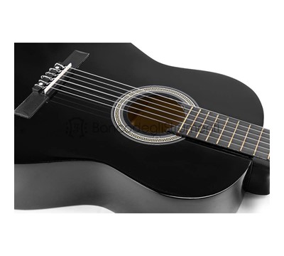 Chitarra classica da 39 pollici Impugnatura confortevole e corde in nyloni Corpo: tiglio Tastiera: acero Colore: Nero Il Kit SoloArt include anche: Borsa morbida resistente, Plettri (2x), Accordatore digitale a clip, Set corde di ricambio, tracolla per chitarra