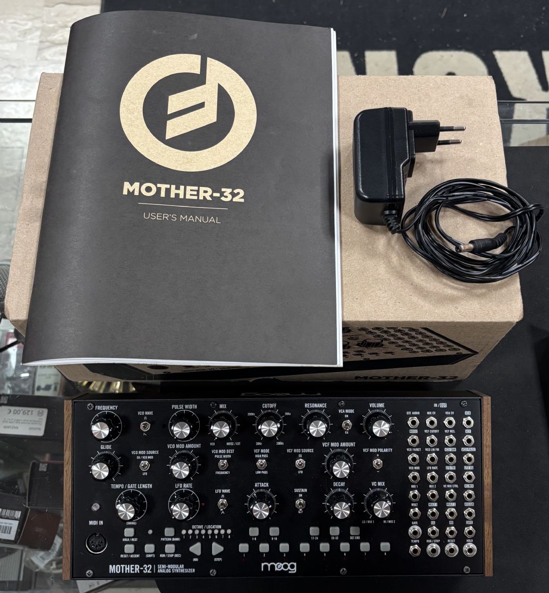 Mother-32 è dotato di un robusto telaio in alluminio estruso con pareti di legno e dispone di uno step sequencer CV/Gate a 32 step con 64 locazioni di sequenza, filtro Moog low pass e high pass, un oscillatore con uscita indipendente per le forme d'onda, un oscillatore di modulazione sub audio/audio, due mixer controllati in tensione, MIDI In e conversione MIDI to CV, una patchbay con 32 punti di connessione e CV jack con 16 possibili sorgenti di assegnazione.