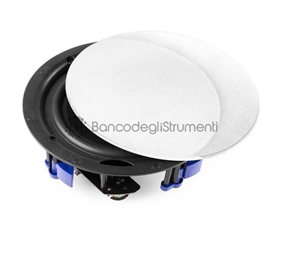 Diffusore da soffitto Hi-Fi ad alta potenza Rete crossover elettronica integrata Griglia in alluminio con chiusura magnetica Griglia sottile dell'altoparlante a basso profilo per una finitura elegante Diffusore coassiale a 2 vie Versione 8 Ohm Fornito singolarmente Colore: Bianco