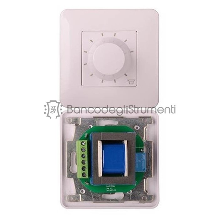 Controllo volume per linea 100 V Versione: 12W 11 livelli di volume Elegante Pannello frontale bianco in ABS (RAL9010) Attenuatore di alta qualità Profondità di montaggio 43 mm Collegamento a vite Le scatole a muro (DIN 49073) devono avere una profondità di 50 mm Inclusa scatola da incasso standard per il montaggio