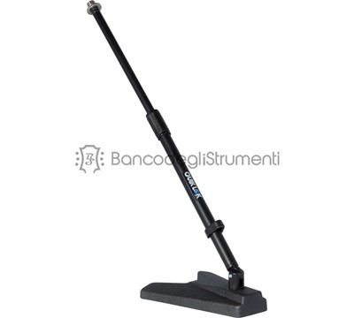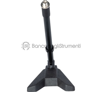 Asta corta regolabile in altezza ed angolazione con base triangolare in acciaio e stelo snodato. Può essere usata a terra per riprendere batterie, amplificatori, o come asta da tavolo per sale conferenza.