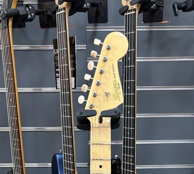 La Squier Classic Vibe Duo Sonic vanta due pickup Single-Coil Duo-Sonic Custom Vintage Style con magneti AlNiCo 5. A questi si aggiunge il ponte Vintage Style Top-Load Hardtail con 3 Barrel Saddles.