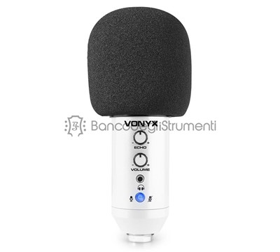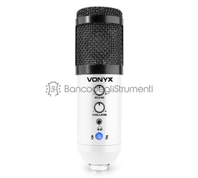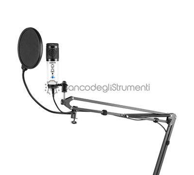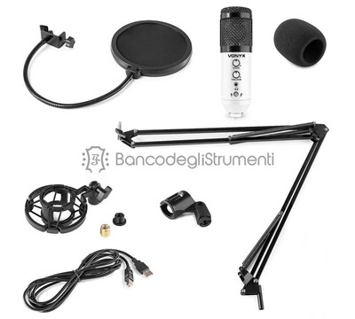 Microfono a condensatore con uscita USB Scheda audio integrata Guadagno e livello di eco regolabili Connettore per cuffie (3,5 mm) Pulsante Mute (LED blu = ON, LED rosso = OFF) Registrazione di alta qualità Eccellente proiezione vocale Connettività Plug & Play USB Robusto involucro in metallo per una maggiore longevità Alta compatibilità (Windows, Mac OS) Colore: bianco Il kit comprende anche: Supporto per braccio a forbice con sospensione regolabile Filtro pop sul collo d'oca Filtro in schiuma Cavo USB da A a B Adattatore da 3/8'' a 5/8''