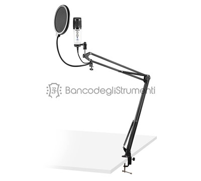 CMS320W Stud.MicroSet USB White: Il set CMS320 contiene un microfono a condensatore ad alte prestazioni insieme a un supporto per braccio a forbice regolabile e un filtro antipop sul collo d'oca.