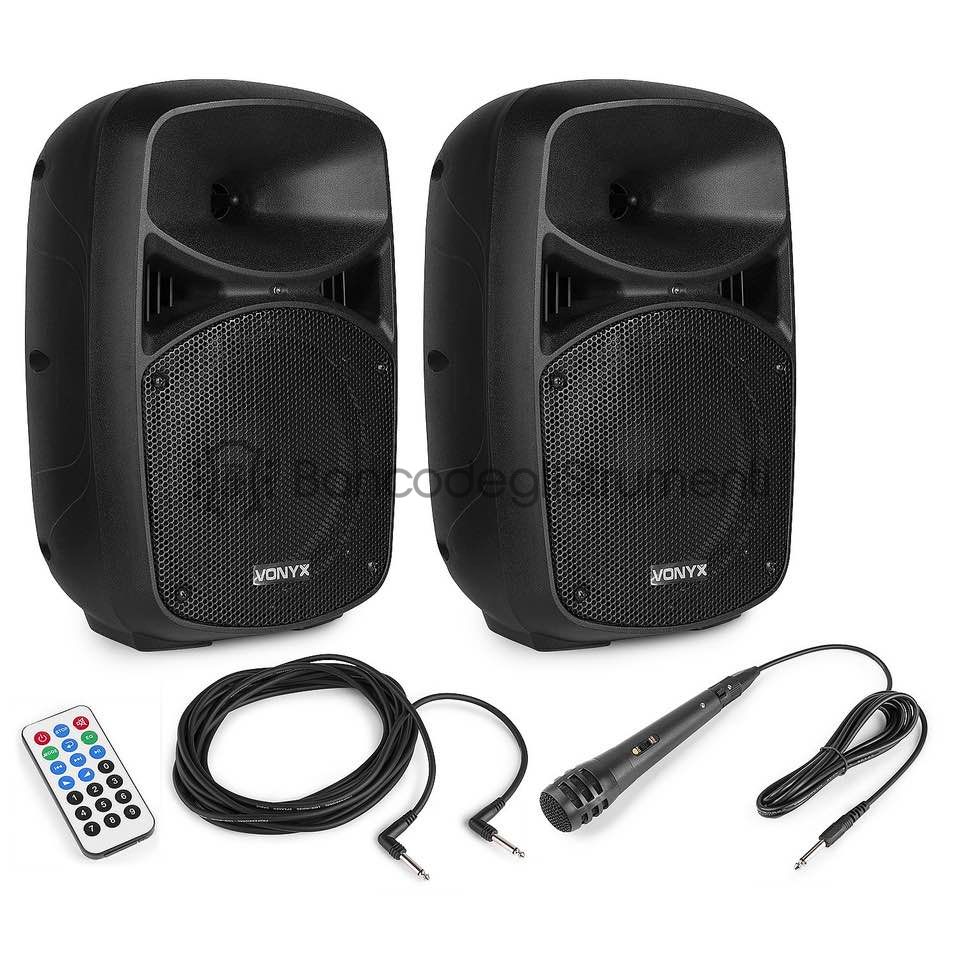Il set contiene una coppia di altoparlanti da 8 ", un modello passivo e uno attivo.