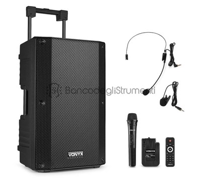 VSA500-BP Port.System 12HH+BP UHF : La serie Vonyx VSA è una serie di sistemi audio portatili professionali da 12” e 15” di alta qualità.
