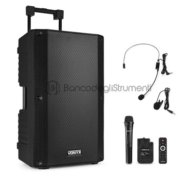 VSA700-BP Port.System 15HH+BP UHF : La serie Vonyx VSA è una serie di sistemi audio portatili professionali da 12” e 15” di alta qualità.