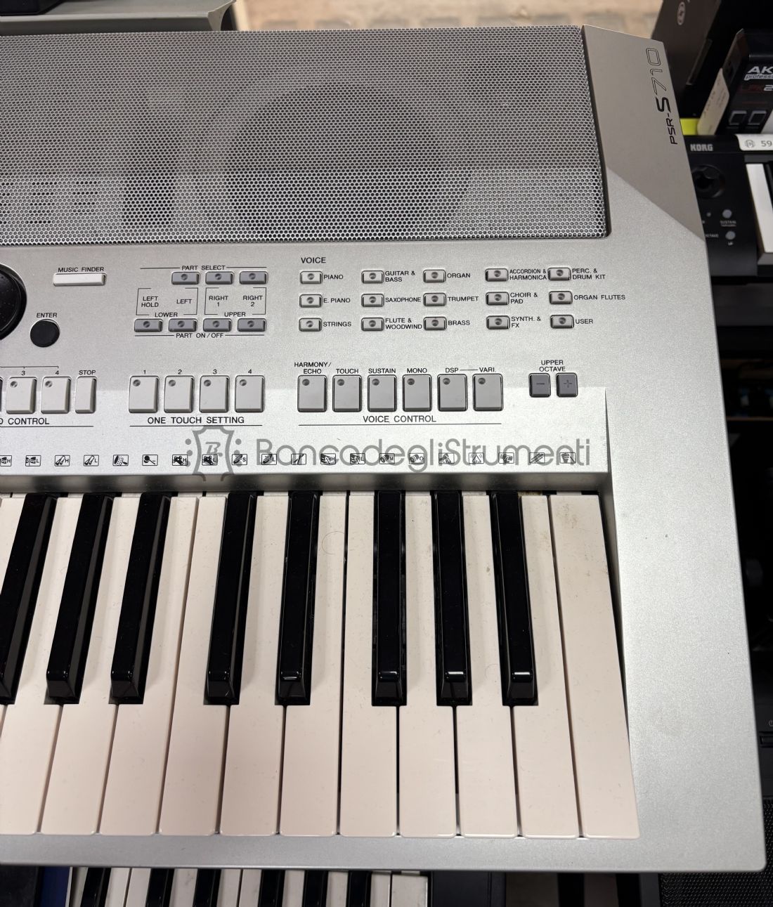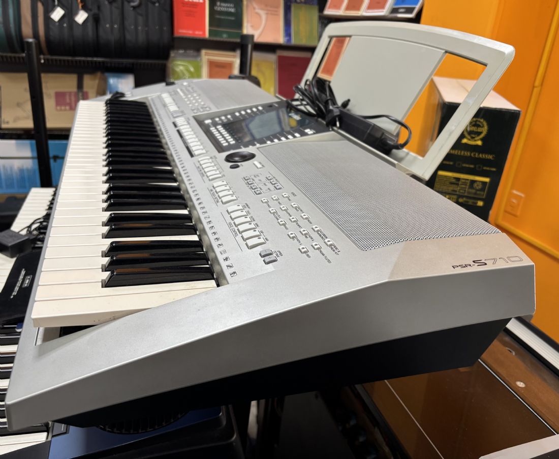 La Yamaha PSR-S710 rappresenta un significativo balzo in avanti nell'evoluzione degli Arranger Workstation keyboard. L'aggiunta della registrazione audio tramite porta usb offre enormi vantaggi per tutti i musicisti -- principianti, hobbisti e professionisti. Dotata di 61 tasti di dimensioni standard e polifonia a 128 note, 387 voci strumentali realistiche, 480 voci XG, 24 Drum/SFX Kits e 232 stili di accompagnamento che permettono di divertirsi con la musica regionale e folcloristica. La Tecnologia megavoice mette a disposizione campioni multipli lungo tutta la tastiera con funzioni di passaggio molto sofisticate, per ottenere suoni incredibilmente autentici. L'ampio display LCD offre una grafica attraente e utili messaggi per un accesso rapido e per operazioni senza errori. Il display indica accordi, partiture, testi voci, informazioni sullo stile e molto altro. E' possibile registrare le proprie performance come dati audio utilizzando un dispositivo di memoria USB. Collegando un microfono o una chitarra allo strumento si possono registrare tastiera e chitarra insieme, oppure registrare la propria voce accompagnata da un brano in sottofondo. La porta LAN è destinata alla connessione internet via cavo esattamente come la porta LAN di un computer. E' possibile collegarsi ed accedere direttamente allo speciale servizio Yamaha "Internet Direct Connection (IDC)" senza utilizzare un computer. Una volta connessi con IDC è possibile scaricare i contenuti che si desiderano, direttamente sullo strumento.