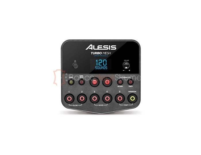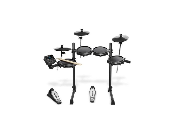 Tre sono i pad dedicati ai piatti (hi-hat, crash e ride) tutti da 10", due i pedali progettati da Alesis dedicati al controllo dell'hi-hat ed al controllo del suono della cassa. Il tutto è installabile sul robusto e stabile rack in alluminio incluso nella confezione, insieme alle bacchette ed ai cavi per il collegamento dei trigger pad al modulo sonoro. Il Drum Module Turbo Electronic è fornito di oltre 100 suoni di batterie e percussioni, che compongono i 10 kit pronti all'uso che coprono svariati generi musicali. Il modulo è inoltre fornito di 30 basi sulle quali allenarsi.