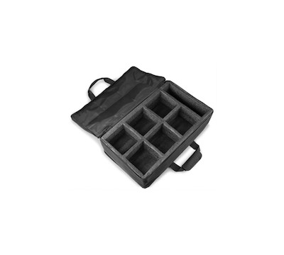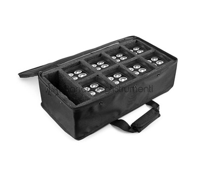 Protezione di qualità per uplight BBP44 8 comparti individuali per i fari Compartimento aggiuntivo per stoccare cavi e altri accessori Risparmia spazio nel trasporto permettendo alle luci di essere impilate in una borsa adeguata e non ingombrante. Custodia morbida imbottita a prezzo accessibile