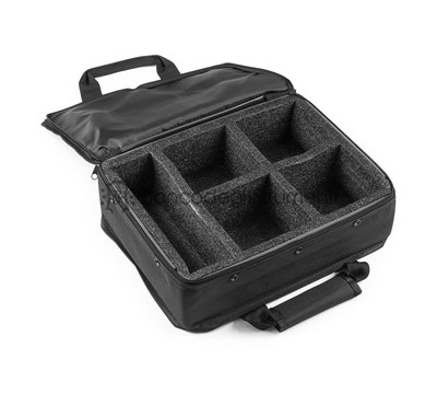 Protezione di qualità per uplight BBP90 4 compartimenti individuali per stoccare i fari Compartimento aggiuntivo per stoccare cavi e accessori Risparmia prezioso spazio durante il trasporto permettendo alle luci di essere impilate senza dover essere imballate Case morbido e imbottito a prezzo contenuto