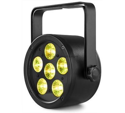 Light source: 6-in-1 LED LED colours: Red, Green, Blue, Amber, White, Ultra Violet LED power: 12 Quantity of LEDs: 6 Beam angle: 26 Field angle: 50 Illuminance: 2600 Flash rate per second: 0 - 24Hz DMX channels: 3, 5, 6, 11 DMX connector: 3-pin XLR Modes: Automatic programs, DMX Power plug: IEC Power consumption: 0.3 - 0.1A Power supply: 110-240VAC 50/60Hz Dimensions (L x W x H): 200 x 200 x 83 Weight: 1,30 Accessories: Mounting bracket, Remote control