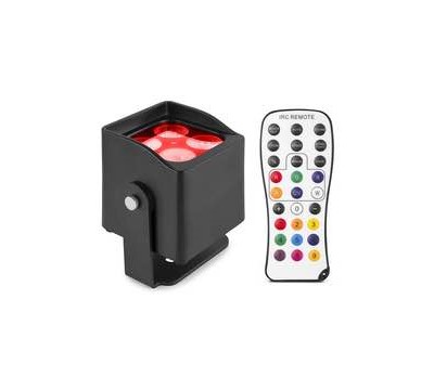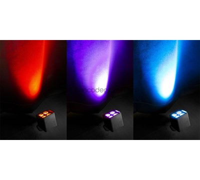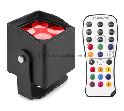 Wash light a batteria 4 LED RGBW 4-in-1 da 4W Fino a 25 ore di autonomia (a seconda dell'intensità) Tempo di ricarica rapido di sole 3 ore IP65 impermeabile per uso esterno Facile modalità autonoma Programmi automatici con velocità regolabile 0-100% dimmer elettronico Strobo con velocità selezionabile Colore selezionabile dissolvenza e flash Telecomando IR