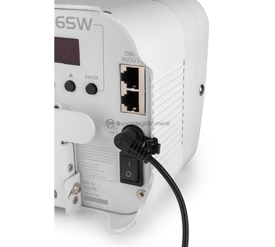 6 LED RGBAW-UV 6 in 1 da 12 W Ricevitore DMX wireless integrato Piedino pieghevole integrato per posizionamento angolare Fino a 9 ore di autonomia (a seconda dell'intensità) Tempo di ricarica rapido di sole 3 ore DMX e modalità stand-alone 6 o 10 canali DMX Telecomando IR Suono attivato con sensibilità regolabile Modalità automatica con velocità regolabile Sincronizzazione master/slave Dimmer elettronico 0-100% Ingresso/uscita DMX tramite RJ45