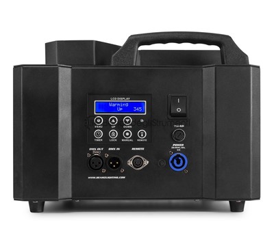 Macchina del fumo da 3500W con luci led 48x 4W 4-in-1 integrate Miscelazione di colore rosso, verde, blu e ambra Uso verticale, orizzontale e capovolta Crea un'alta colonna di fumo illuminata Serbatoio illuminato a led (colore blu) Pannello di controllo integrato con display LCD Telecomando LCD con funzione timer (5mtr) Telecomando wireless integrato Modalità DMX o standalone Stop istantaneo Doppia pompa e resistenza Serbatoio del fluido da 3500 mlIngresso Powerconnector