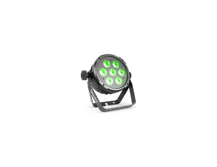 BT270 Flat Par 7x6W 4in1 DMX IRC: Un parcan ad alta potenza in alloggiamento ABS con 7 LED da 6W RGBW (4 in 1).