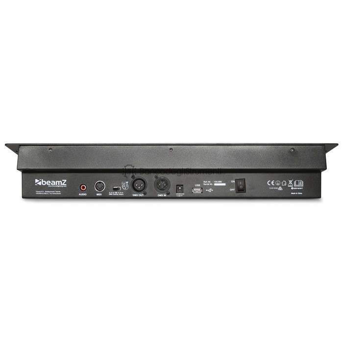 DMX connector: 3-pin XLR Power supply: 100-240VAC 50/60Hz Dimensions (L x W x H): 132 x 482 x 80mm Weight: 2,50