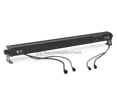 Light source: 4-in-1 LED LED colours: Red, Green, Blue, Amber LED power: 8 Quantity of LEDs: 12 Dispersion: 53° - 19° Illuminance: 3500 lx @ 1m Flash rate per second: 1 - 24Hz DMX channels: 3, 4, 5, 9 DMX connector: 3-pin XLR Modes: Automatic programs, DMX Daisy chain Yes: (max. 6 bars) IP rating: IP65 Cooling: Convection Display: LED Power consumption: 0.61 - 0.3A Power supply: 100-240VAC 50/60Hz Dimensions (L x W x H): 1000 x 80 x 135mm Weight: 5,80 Accessories: Mounting bracket, Power cable, Remote control