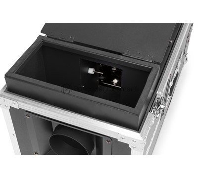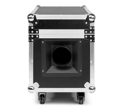 Macchina compatta per nebbia bassa Funziona con acqua e liquido per fumo standard L'agitatore ultrasonico converte l'acqua distillata in una nebbia sottile Uscita continua dopo il tempo di riscaldamento iniziale Uscita regolabile e velocità della ventola Controllo tramite display digitale a bordo o DMX Flightcase solido con ruote DMX in/output via 3-pin XLR