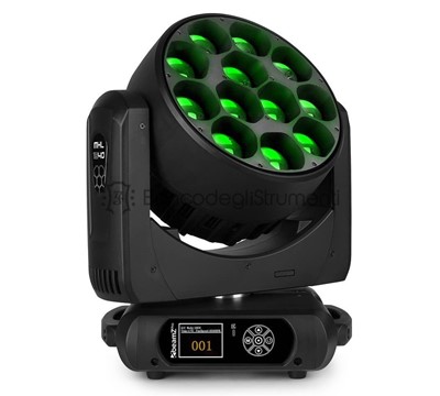 MHL1240 Mov Head Zoom 12x40W: MHL1240 una testa mobile Wash con zoom motorizzato lineare dotato di 12 LED 4 in 1 ultra luminosi da 40 Watt secondo la più recente tecnologia Led.